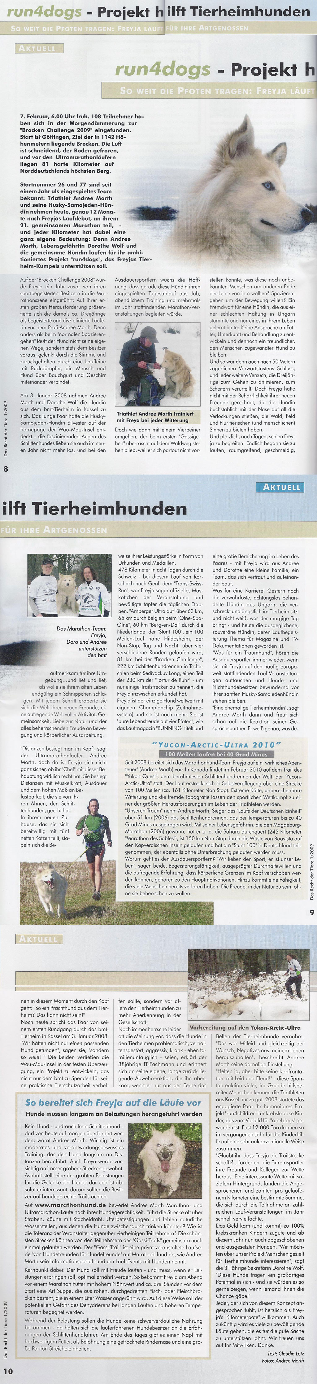 BMT MAGAZIN 01/09 MARATHONHUND Projekt "run4dogs" |