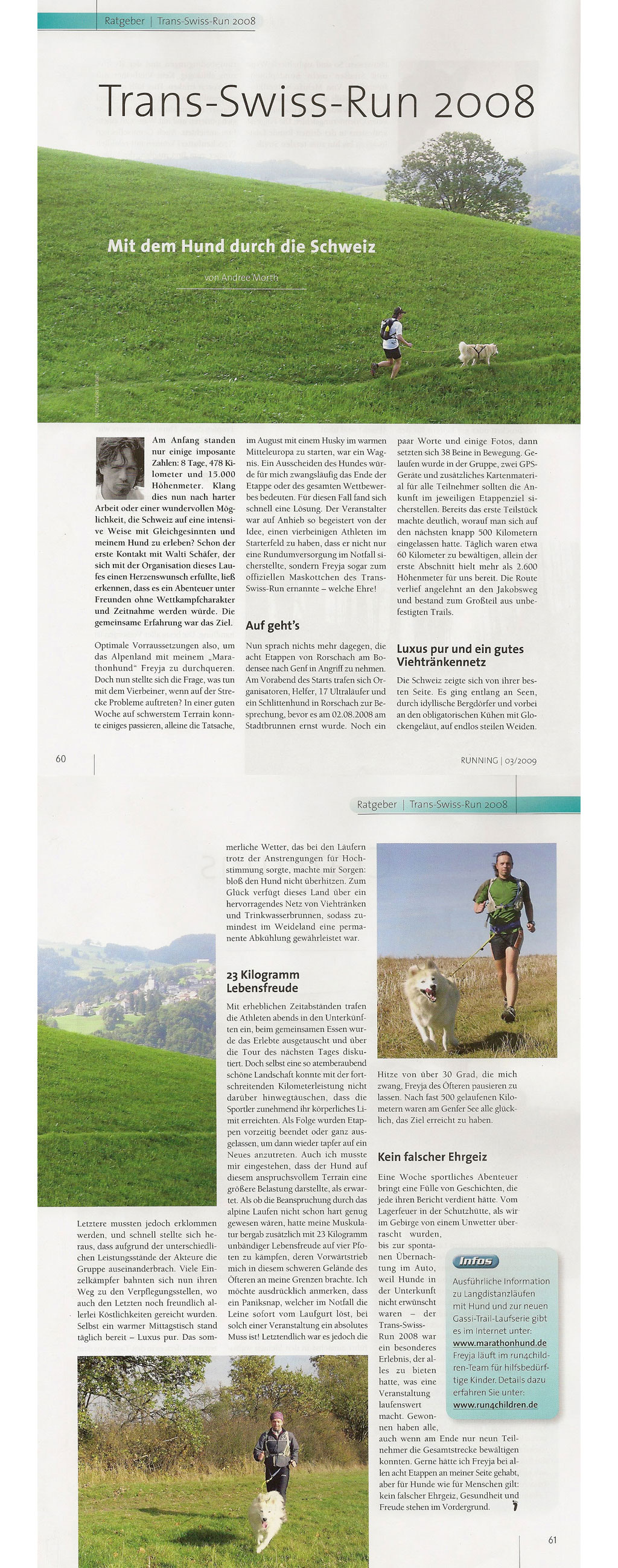 | RUNNING MAGAZIN 03/09 Freyja, Doro und Andree beim Trans-Swiss-Run 2008 |
