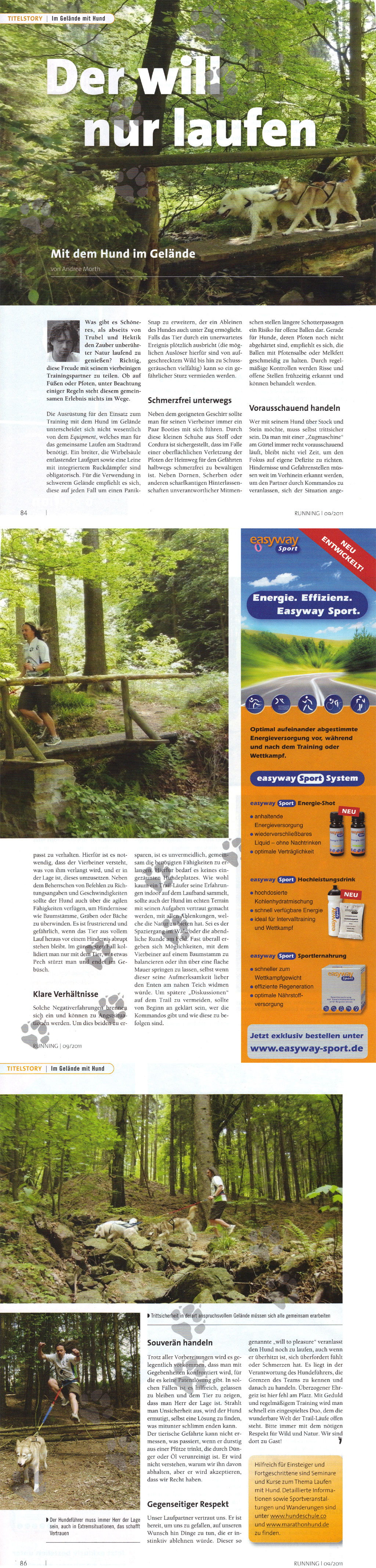RUNNING MAGAZIN 09/11 TITELSTORY: "Mit dem Hund im Gelände" von Andree mit Fjelline und Ylvi |